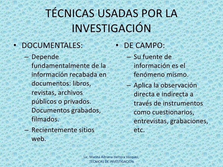 También les paso otro vínculo con información más detallada de las técnicas de investigación en un archivo de .pdf. Dale click al siguiente título: